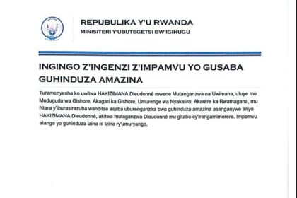 ITANGAZO RYA HAKIZIMANA DIEDONNE RYO GUHINDUZA AMAZINA