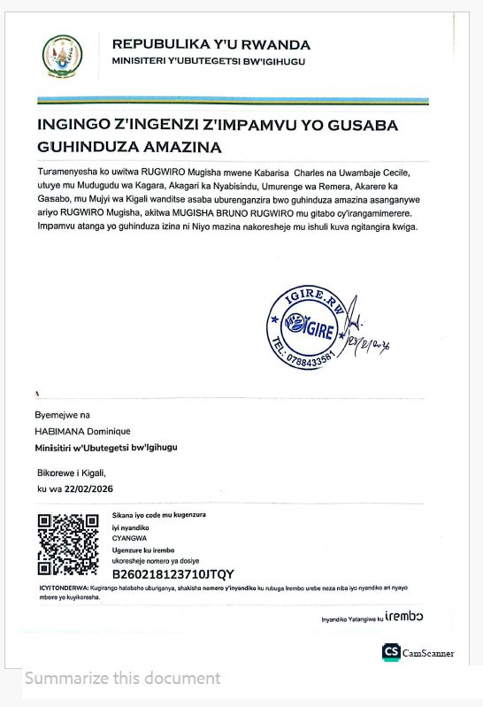 ITANGAZO RYA RUGWIRO MUGISHA/ USABA GUHINDUZA AMAZINA